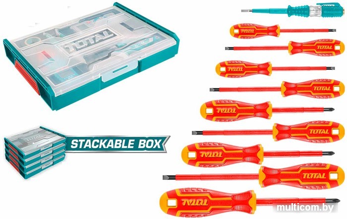 | Комплектация | Изолированная шлицевая отвертка - 4 шт. СЛ3.0 * 75мм СЛ4.0 * 100мм Сл5.5 * 125мм СЛ6.5 * 150мм Изолированная отвертка Phillips - 3 шт. РН0 * 60мм РН1 * 80мм РН2 * 100мм Изолированная отвертка Pozidriv - 2 шт. ПЗ1 * 80мм ПЗ2 * 100мм Тестовый карандаш, 140 мм - 1 шт. |
