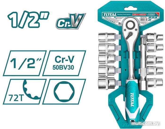 | Комплектация | Вороток 1/2" с трещоткой - 1 шт. Удлинитель 1/2" 152 мм - 1 шт. Торцевая головка (10 мм, 11 мм, 12 мм, 13 мм, 14 мм, 15 мм, 17 мм, 19 мм, 21 мм, 24 мм) - 10 шт. Пластиковый держатель для хранения - 1 шт. |