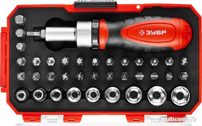| Комплектация | Реверсивная отверткаАдаптер для торцовых головокТорцовые головки (9 шт.): 4, 5, 6, 7, 8, 9, 10, 11, 12Биты 25 мм (35 шт.): PH 0, 1, 2, 2, 3; SL 3, 4, 5, 6, 7; PZ 0, 1, 2, 3; HEX 2, 3, 4, 5, 6; TX 8, 9, 10, 15, 20, 25, 27, 30 |