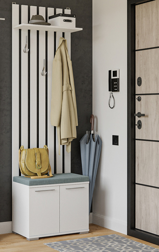 | Информация | Вешалка в комбинации с обувницей – это отличное решение для вашей прихожей. Вешалка имеет вертикальную планку с закрепленными на ней крючками. Наличие задней стенки защищает стены от влаги и загрязнений. Обувницу можно использовать как небольшой пуфик с двумя закрытыми отсеками для хранения обуви, коробок и иных “обувных” аксессуаров и прочей хозяйственной мелочи. Закрытая обувница позволяет защищать обувь от пыли и домашних животных. Навесная открытая полка отлично подойдет для размещения шапок, зонтов, шарфов и иных “головных” уборов и аксессуаров. |