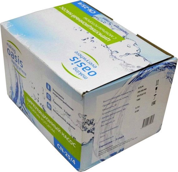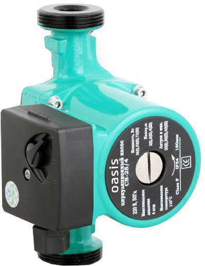 | Информация | Циркуляционный насос «Oasis» обеспечивает циркуляцию воды в системах отопления, а также системах обогрева полов. Прибор имеет небольшие габаритные размеры и вес, работает практически бесшумно и потребляет мало электроэнергии. Циркуляционные насосы «Oasis» применяют в загородных домах площадью свыше 100 кв.м, так как естественная конвекция не сможет обеспечить равномерный прогрев всех отопительных приборов. |