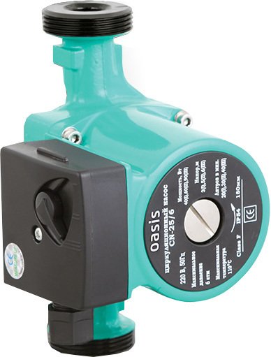 | Информация | Циркуляционный насос «Oasis» обеспечивает циркуляцию воды в системах отопления, а также системах обогрева полов. Прибор имеет небольшие габаритные размеры и вес, работает практически бесшумно и потребляет мало электроэнергии. Циркуляционные насосы «Oasis» применяют в загородных домах площадью свыше 100 кв.м, так как естественная конвекция не сможет обеспечить равномерный прогрев всех отопительных приборов. |