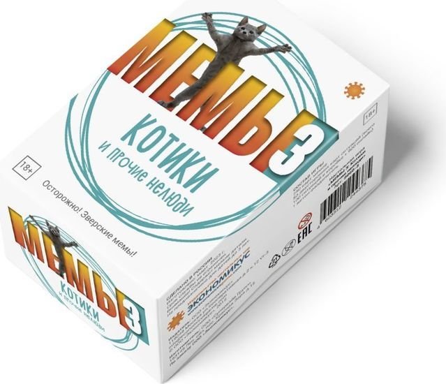 | Информация | Цель игры – подбирать мемы к ситуациям и составлять самые смешные пары. Любите мемы с котиками? Кто же их не любит! А авторы игры "Мемы" любят их настолько, что собрали лучшие в одной коробке. Также в набор вошли мемы и с другими забавными животными: дикими и домашними. "Мемы 3. Котики и прочие нелюди" – это уже третья часть в серии вирусных игр от издательства "Экономикус". Правила остались такими же простыми: игроки зачитывают ситуацию, выкладывают к ней мемы и выбирают самый смешной вариант. |