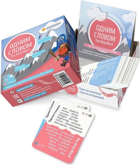 | Комплектация | 72 двусторонные карты со словами (всего 1008 русских и английский слов) и буклет правил |