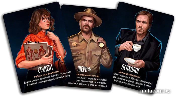 | Информация | Письма Призрака - детективная настольная игра с тайными ролямиВ маленьком городке происходит что-то загадочное. Полиция уже сбилась с ног в попытках разгадать очередное преступление. К счастью, юная амбициозная журналистка рядом с домом жертвы совершенно случайно обнаружила мистический почтовый ящик. В это трудно поверить, но что-то происходит с фотографиями улик, брошенными в этот ящик. Часть из них исчезают бесследно, а часть возвращаются – будто некий призрак пытается что-то рассказать вам. Вы просто пришли поддержать вашу подругу в её журналистском расследовании. А оказались вовлечены в расследование сами, как настоящие детективы. Впрочем, возможно кто-то из вас оказался здесь совсем не случайно – убийца может скрываться среди ваших друзей!“Письма Призрака” – игра с тайными ролями о расследовании преступления. Игроки-детективы из 12 улик (изображений предметов), обнаруженных на месте преступления, вычисляют 3 истинные улики. Детективам помогает Игрок-Призрак (жертва преступления) с помощью других улик-подсказок, ассоциативно намекая на истинные улики. Среди Детективов прячется Убийца, который стремится запутать расследование.Игра длится 4 раунда:- игроки выбирают из руки и передают взакрытую по 1 улике Призраку;- Призрак открывает из них удачные. А неподходящие оставляет закрытыми. Игрок с тайной ролью Убийцы стремится запутать следствие – как в обсуждении открытых улик, так и путём блефа об уликах, оставленных закрытыми. После 4-х раундов игроки большинством голосуют за 3 улики и игрока-Убийцу.Чем больше игроков, тем больше интересных ролей: Сообщники Убийцы, Свидетель, Эксперт, Шантажист. В расширенном режиме в игру добавляются карты персонажей с уникальными способностями. |
