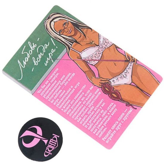 | Комплектация | Восемь методик знакомства в общественном месте. Все восемь прекрасно работают даже для тех, кто стесняется или боится ошибиться.Сорок откровенных фантов — карточек с заданиями.Фишка для жеребьёвки |