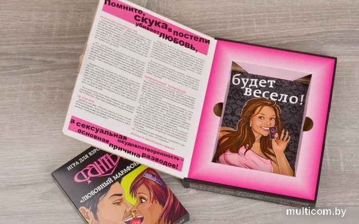 | Информация | Готовы поиграть?Если вы знаете, что ролевые игры — это не только переодевание в эльфов и магов. Если вы не против протестировать на практике гибкость своего тела. И погрузиться с головой в увлекательную эротическую игры... Забудьте о приличиях и смело открывайте коробку с «Любовным марафоном».Дрожать можно не только от холодаВ небольшой коробочке — почти полсотни приятных заданий. Начните с самых «невинных», белых, фантов. А когда почувствуете, что в комнате стало жарко, перейдите к следующей, уже более порочной, желтой колоде. Не торопитесь сразу взяться за розовые и красные фанты: чем длиннее прелюдия, тем ярче будет кульминация.Можно посмотреть примеры заданий?Да, примеры есть на фотографиях игры. В целом, эта коробочка фантов рассчитана на тех, кто не прочь попробовать что-нибудь новое. Большинство сексуальных заданий предлагает поиграть в ролевую игру и попробовать несколько новых поз. Подсказки нарисованы прямо на картах: так в задании со «слесарем-мебельщиком» иллюстрации подсказывают, как можно удобно устроиться вдвоем... на обычном стуле.Кто будет в восторге от такого приключения?Люди, с хорошо развитой фантазией. Все те, кто уже неоднократно придумывал себе сексуальные приключения, но так и не рискнул их воплотить. Или просто готов попробовать что-то новенькое.Пара, которая уже давно вместе. Вернуть отношениям новизну — очень просто. Нужно всего лишь забыть о том, что вы знакомы. И начать заново открывать друг друга.Любители экспериментов. «Любовный марафон» скрывает достаточно озорные задания, которые точно разнообразят сексуальную жизнь. И при этом остается довольно приличным, не предлагая ничего по-настоящему рискованного. Если вы хотите опробовать покупки из секс-шопа, скорее вас заинтересует колода «Горячие эксперименты».Порядок проведения игры1. Игра заключается в выполнении заданий, написанных на карточках-фантах, при этом роли определяются жеребьевкой. Она имеет четыре уровня — белый, желтый, розовый и красный, что определено цветом фантов. Чем темнее фант, тем «горячее» задание.2. Рекомендуется начинать игру с белых фантов, сформировав из них первоначальную колоду.3. Перед вытаскиванием из колоды фанта каждый раз проводится жеребьевка, определяющая фантующего.4. Жеребьевка заключается в том. что проводящий ее игрок кладет в одну из ладоней фишку, а партнер угадывает, где она. Тот. кому достанется фишка, выступает следующим фантующим.5. После завершения жеребьевки фантующий наугад вытягивает из колоды и зачитывает очередной разыгрываемый фант. При этом фанты располагаются «рубашкой» вверх, чтобы не видеть заданий.6. Вы выполняете задание фанта.7. Разыгранный фант откладывается в сторону и. не глядя, заменяется в колоде на фант следующего уровня. Можно ускорить «нагрев» игры, каждый раз заменяя две карточки на две. три на три...8. Начинается новая жеребьевка, и разыгрывается следующий фант.9. Как только при розыгрыше очередного фанта попадается фант более темного уровня, игра переходит на этот уровень, и вы заменяете все карточки в колоде на более темные. |