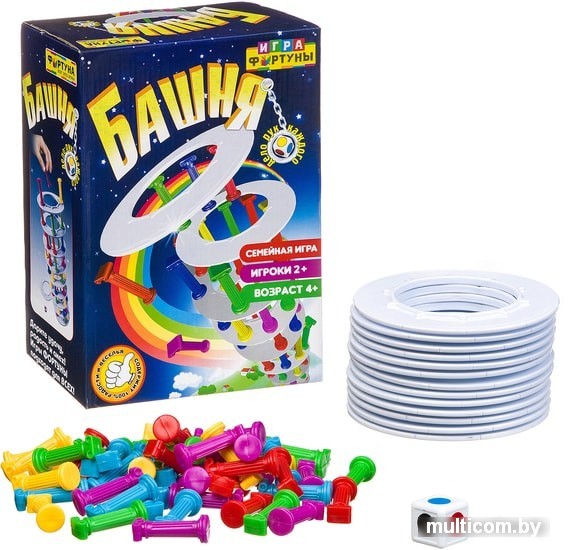 | Комплектация | кольца (13 штук), цветные колонны (5 цветов, 60 штук), игральная кость. |