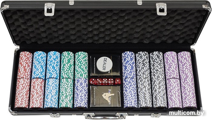| Комплектация | 500 фишек; 2 колоды карт; 5 костей; фишка дилера; кейс; ключи от кейса |