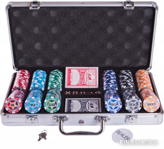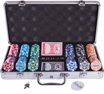 | Комплектация | - 300 фишек - 5 костей - 2 колоды карт - Фишка дилера - Ключи от кейса |