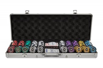 | Комплектация | 500 фишек, 2 колоды покерных карт, фишка дилера, 5 игральных костей, металлический кейс |