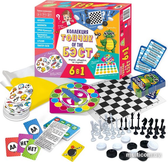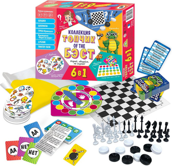 | Комплектация | Шахматы и шашки, игра на угадывание слов «Турбо-крокодил», познавательная викторина «Верю не верю», развлекательно-развивающая игра «Дублик», веселая игра «Твистер-пати». |
