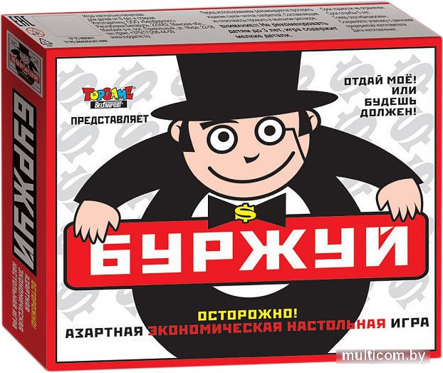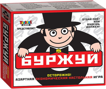 | Комплектация | Игровое поле, 4 фишки, кубик, 104 карточки, игровые деньги. |