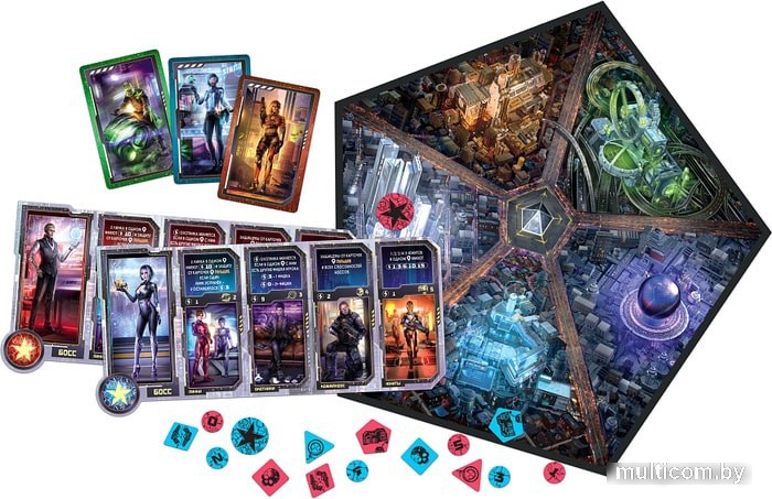 | Информация | Бескомпромиссная борьба развернулась за город-корпорацию Гелиос: наследники готовы пойти на все, чтобы захватить власть. Мировой Синдикат выдвинул свой ультиматум: за 24 часа город должен быть подчинен одному из соперников, иначе Синдикат поглотит его, а претенденты лишатся всего. «Ультиматум Синдиката» – дуэльная игра на контроль территорий в мире киберпанка. Город Гелиос состоит из пяти районов. Цель каждого игрока – за два раунда взять под контроль больше районов, чем соперник. Для этого вам пригодятся различные наёмники и смелые тактические решения. Доминируйте над противником и побеждайте! |