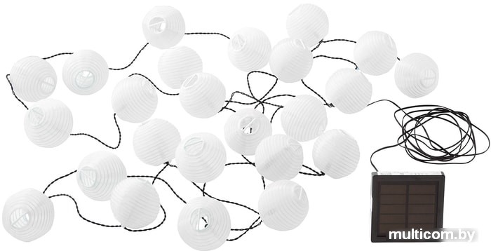 | Информация | Интегрированный светодиод.1 перезаряжаемая батарейка AA 1,2 В для светильников на солнечных батареях прилагается.Время зарядки 9-12 часов в солнечную погоду и свыше 12 часов в пасмурную погоду. |