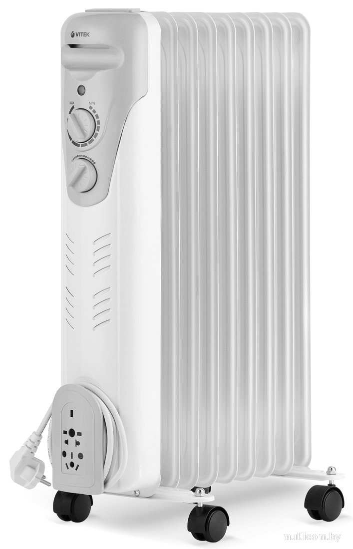 | Информация | Быстро согреть помещение площадью до 20 квадратных метров, не пересушивая при этом воздух, позволит радиатор VITEK VT-1709W, имеющий 9 секций. Если в комнате стало слишком жарко, исправьте это, выбрав с помощью удобного терморегулятора необходимый режим: 800 Вт, 1200 Вт, 2000 Вт. Следует также отметить экономичность и безопасность радиатора: он потребляет минимальное количество электроэнергии и автоматически отключается при опрокидывании или при угрозе перегрева. |