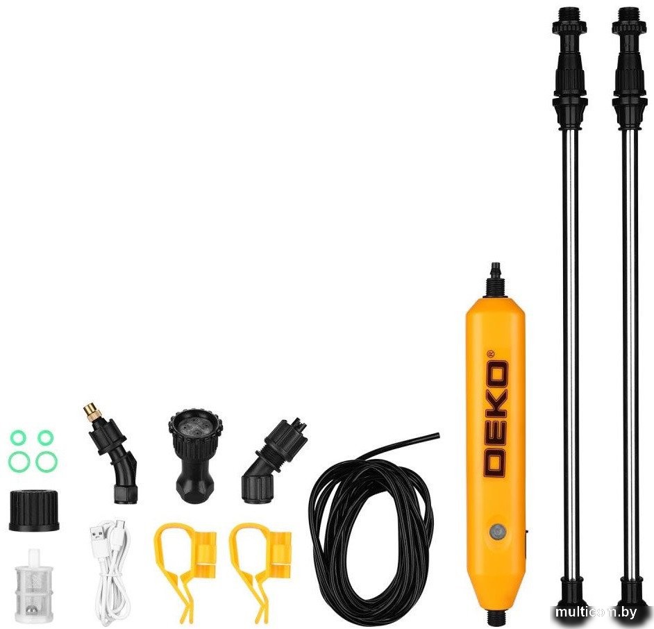 | Комплектация | - Опрыскиватель – 1 шт. - Шланг – 1 шт. - Зарядное устройство Type-C – 1 шт. - Сопла – 3 шт. - Фильтр для шланга – 1 шт. - Уплотнительные кольца – 4 шт. - Раздвижные штанги – 2 шт. - Держатели для шланга – 2 шт. - Фиксатор соединения шланга – 1 шт. - Коробка |