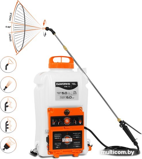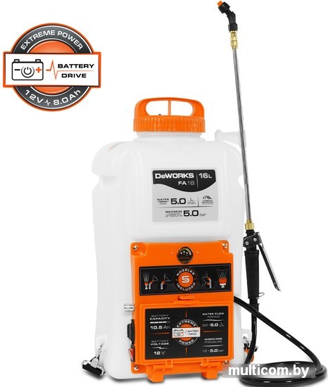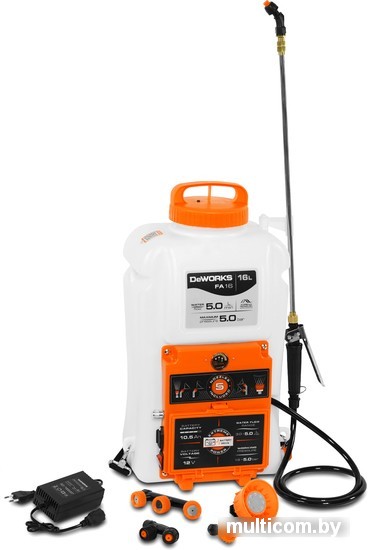 | Информация | Телескопическая штанга для доступа к труднодоступным местам. Аккумулятор и зарядное устройство в комплекте. Рукоятка с возможностью фиксации для непрерывной работы. 5 распыляющих насадок в комплекте. Профессиональный ранцевый ремень в комплекте. Большое заливное отверстие для удобства наполнения DeWorks FA 16. |