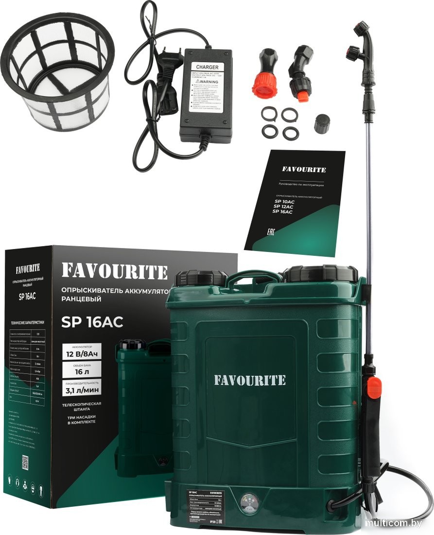 | Информация | - Аккумуляторный опрыскиватель SP 16AC от FAVOURITE имеет объем 16 литров и идеально подходит для применения жидких удобрений и средств защиты растений. - Он эффективно помогает в борьбе с вредителями на сельскохозяйственных культурах, цветах, в садах и других объектах растениеводства. - Удобный и практичный, этот опрыскиватель станет незаменимым помощником для каждого садовода и огородника. |