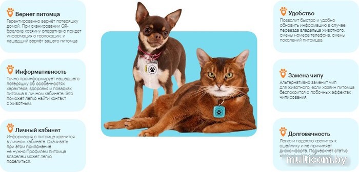 | Информация | ? Мини QR–брелок с многослойным полимерным покрытием и QR–кодом с обратной стороны. ? При сканировании кода смартфоном открывается доступ к онлайн–профилю животного и его владельца. ? Владелец животного автоматически получает сообщение о сканировании брелока. ?? Нашедший питомца может позвонить, написать, отослать GPS–координаты животного. ? Подходит для кошек и маленьких собак. ? Размер брелока: 20?20 мм. |