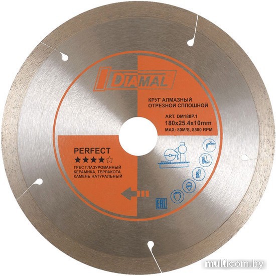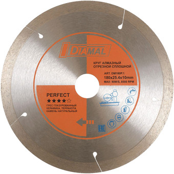 | Информация | Диск алмазный отрезной PERFECT DM180P.1 с тонкой режущей кромкой обеспечивает чистый и тонкий рез греса глазурованного, керамики, терракоты, камня натурального. Применяется на плиткорезах и камнерезах. Высота кромки 10 мм и специально разработанный корпус круга позволяет добиться высокой скорости резки и высокого ресурса. |