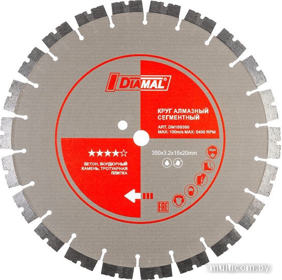 | Информация | Алмазный отрезной сегментный диск DM15S350 ДИАМАЛ, благодаря специально разработанному сегменту М формы с высотой 15 мм, характеризуется высокой скоростью резки и длительным сроком службы. Диск не требует большого давления при работе, что увеличивает его ресурс. |