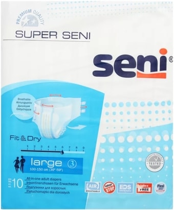 | Информация | Super Seni – это хорошая и проверенная защита при недержании. Предназначены как для активных людей, так и для людей с ограниченными двигательными возможностями. - эластичная резинка в поясе спереди и сзади обеспечивает плотное прилегание к телу и минимальное сдавливание в области талии - эластичные двойные застежки-липучки, которые можно многократно закреплять и откреплять в любом месте подгузника без риска разрыва внешнего слоя - двойной впитывающий слой с антибактериальным суперабсорбентом – высокая впитываемость и нейтрализация неприятного запаха - гидрофобные внутренние боковые бортики – дополнительная защита от протекания - индикатор влагонасыщения информирует о степени наполнения и необходимости смены изделия |