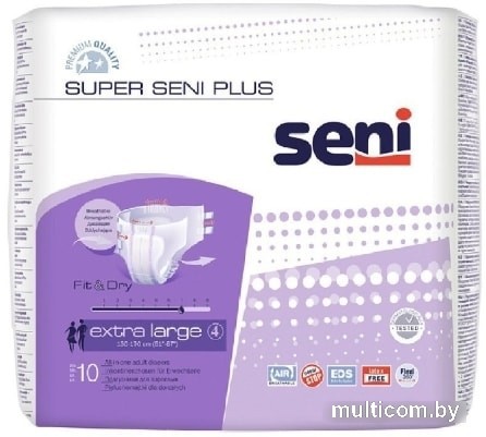 | Информация | Super Seni Plus – это хорошая и проверенная защита при недержании. Предназначены как для активных людей, так и для людей с ограниченными двигательными возможностями.-эластичная резинка в поясе спереди и сзади обеспечивает плотное прилегание к телу и минимальное сдавливание в области талии-эластичные двойные застежки-липучки, которые можно многократно закреплять и откреплять в любом месте подгузника без риска разрыва внешнего слоя-двойной впитывающий слой с антибактериальным суперабсорбентом – высокая впитываемость и нейтрализация неприятного запаха-гидрофобные внутренние боковые бортики – дополнительная защита от протекания- индикатор влагонасыщения информирует о степени наполнения и необходимости смены изделия- особенно подходят для использования в случае длительных промежутков между сменой подгузников |