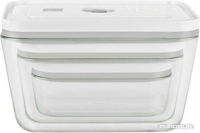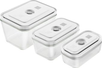| Информация | Функция откачки воздуха: продукты сохраняются свежими до пяти раз дольше, чем при обычном хранении без вакуума: ароматы и питательные вещества надежно сберегаются, количество пищевых отходов сокращается. Компактное штабелируемое хранение продуктов и готовых блюд в холодильнике и морозилке; размеры S/M/L можно складывать друг в друга в кухонном шкафу, когда они не используются. Красивый контейнер для подачи к столу Безопасное замораживание продуктов и готовых блюд (вакуум уменьшает морозильный ожог) Жаростойкость (без крышки до 180°C) Можно разогревать в микроволновой печи и мыть в посудомоечной машине. Набор состоит из 3 контейнеров [вместимость (без крышки)/макс. емкость: S 0,35 л/0,2 л, M 0,9 л/0,75 л, L 2,0 л/1,6 л] Материалы: не содержит БФА, пластик (емкость, крышка), силикон (клапан, уплотнение). Вакуумная крышка с инновационной технологией двойного уплотнения и функцией индикатора вакуума: если внутренняя крышка опущена, контейнер находится под вакуумом. |