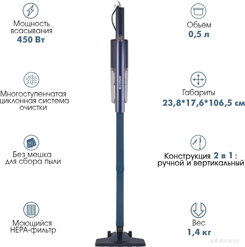 | Информация | Endever SkyClean VC-298 — это революционный вертикальный пылесос, который перевернет ваше представление о домашней уборке. В элегантном корпусе весом всего 1,4 кг скрывается невероятная мощность всасывания 18 000 Па, позволяющая легко справляться с любыми загрязнениями — от мелкой пыли до шерсти домашних животных. Уникальная система 2-в-1 мгновенно трансформирует пылесос из вертикального положения в компактный ручной прибор, давая возможность не только чистить полы, но и обрабатывать мебель, лестницы или салон автомобиля. Инновационная циклонная система с HEPA-фильтром обеспечивает профессиональный уровень очистки, задерживая до 99,97% микрочастиц, включая аллергены и бактерии, что особенно важно для семей с детьми и домашними питомцами. Прозрачный съемный контейнер объемом 0,5 литра с удобным механизмом открывания позволяет легко контролировать уровень заполнения и быстро избавляться от собранного мусора. Все фильтрующие элементы, включая HEPA-фильтр, можно мыть, что избавляет от необходимости постоянной замены расходников. В комплекте вы найдете две профессиональные насадки: щетку для пола и ковров и насадку 2в1: щелевую с удлиненным носиком для труднодоступных мест и специальную мебельную насадку с антистатическим покрытием. 4-метровый шнур питания обеспечивает свободу передвижения по комнате, а уровень шума не превышает 78 дБ, что делает уборку комфортной в любое время суток. Эргономичная ручка гарантирует удобный хват. Этот пылесос — идеальный выбор для современных активных людей, которые ценят свое время и хотят, чтобы уборка занимала минимум усилий. С Endever SkyClean VC-298 поддерживать чистоту в доме стало проще, быстрее и приятнее! |