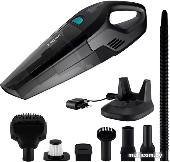 | Информация | Наведу порядок! Ручной беспроводной пылесос КТ-5148 – портативное и компактное устройство. Он легко справится с пылью и мусором, а также с небольшим количеством жидкости. Небольшие габариты и малый вес прибора делают процесс уборки простым и удобным! Убираю сухой мусор и пролитые жидкости Благодаря работе от аккумулятора пылесос имеет неограниченный радиус действия: от уголка квартиры до машины и беседки в саду. КТ-5148 убирает не только сухой мусор, но и засасывает жидкости, поэтому случайно пролитый лимонад больше не станет помехой. Для всех случаев уборки! Пылесос имеет комплект насадок и шланг для разных случаев уборки. Узкая и круглая насадка помогут вам вычистить труднодоступные места и щели. Ворсовая щётка необходима для очистки поверхностей от шерсти, а также ей удобно убирать решётчатые поверхности. Поможет собрать шерсть питомца! Насадка для животных поможет очистить ваших питомцев от слезшей шерсти и прочих загрязнений. Уровень шума пылесоса достигает 78 дБ, поэтому он не вызовет у вас и вашего питомца дискомфорта при работе. Эффективная система фильтрации Фильтр грубой очистки отсеивает крупные и средние частицы мусора. Фильтр тонкой очистки класса останавливает мельчайшие частички пыли, чтобы они не попали в воздух. Пылесборник легко разбирается и чистится. Простое управление Кнопка включения располагается на рукоятке пылесоса, что позволяет удобно и быстро включить и выключить прибор в процессе уборки. На панели управления также отображается уровень заряда пылесоса. Удобное хранение База для зарядки пылесоса предназначена также для его хранения. При желании вы можете зафиксировать базу на стене, чтобы конструкция не занимала много места дома. Съёмный моющийся пылесборник Контейнер пылесборника легко снимается и быстро моется. Благодаря съёмному прозрачному пылесборнику вы точно поймёте, когда следует очистить его. Для очистки пылесборника необходимо нажать на кнопку отсоединения пылесборника. Полный комплект! Вместе с ручным пылесосом КТ-5148 идут 5 насадок: узкая, круглая, насадка для сбора слезшей шерсти животных, насадка для сбора жидкостей, ворсовая щётка и шланг. Кроме того, в комплекте идёт запасной фильтр тонкой очистки для замены. |