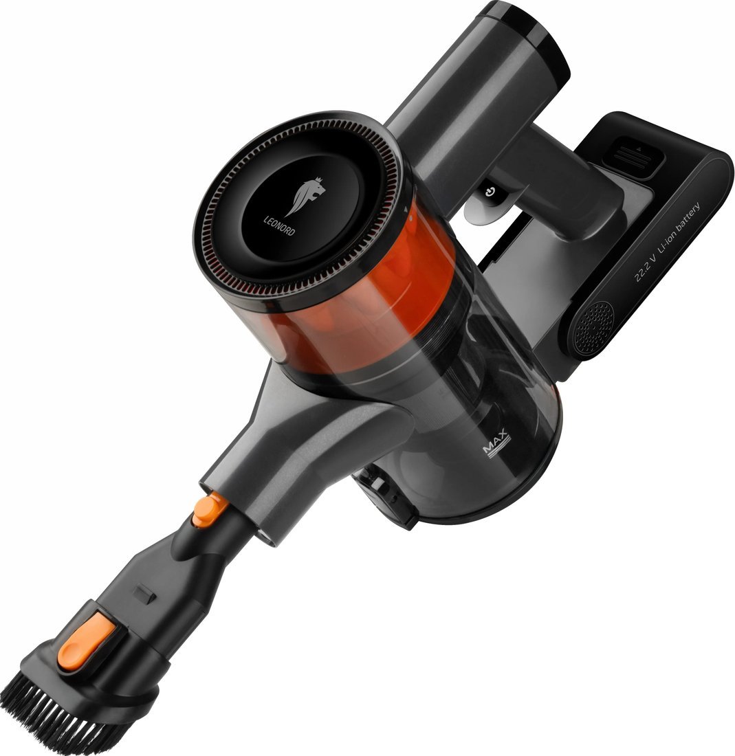 | Информация | -Вертикальный пылесос Leonord LE-1415 - это современное решение для быстрой и эффективной сухой уборки дома. Благодаря аккумуляторному питанию устройство обеспечивает до 40 минут автономной работы, а время полной зарядки составляет до 5 часов, что позволяет без труда поддерживать чистоту в квартире или доме. -Модель оснащена контейнером для сбора пыли объемом 0.5 литра, что избавляет пользователя от необходимости регулярно покупать сменные мешки. Пылесос оборудован фильтром тонкой очистки типа НЕРА, который задерживает мельчайшие частицы пыли и аллергены, делая воздух в помещении более чистым. -Пылесос оснащен двумя уровнями регулировки мощности, что позволяет подстраивать интенсивность уборки под разные типы поверхностей. Управление мощностью реализовано на рукоятке, что повышает удобство использования. В комплект входят различные насадки:для пыли, для ковров и пола, щелевая насадка, а также турбощётка, что расширяет функциональность прибора. -В комплекте предусмотрено настенное крепление для удобного хранения пылесоса. Прочный металлический корпус и цельная труба обеспечивают долговечность и надежность конструкции. Leonord LE-1415 станет отличным помощником для поддержания порядка без лишних усилий, а стильный черный цвет корпуса гармонично впишется в любой современный интерьер. |