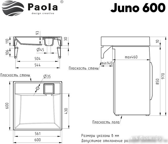 | Информация | ? Умывальник Paola Juno 600 - компактный и эргономичный, идеально подходит для установки над стиральной машиной, что позволяет экономить площадь ванной комнаты. Изготовлен из прочного износостойкого литьевого мрамора и покрыт специальным защитным покрытием гелькоутом. |