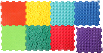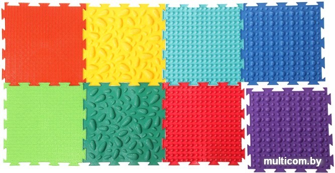 | Информация | Ортопедическое напольное покрытие состоит из отдельных модулей, которые соединяются между собой по принципу пазла. По массажному коврику можно ходить или выполнять упражнения, стоя на нём. Во время занятий стимулируются рецепторы на стопе и формируются её физиологические своды. Изделие применяется для профилактики плоскостопия у детей, массажа стоп и снятия усталости ног. В набор входит: Камни - 2 Трава - 2 Шишки - 2 Шипы - 2 |