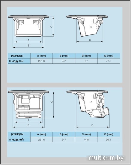 | Информация | Для более гибкого подбора, розеточный модуль продается не укомплектованным механизмами!!! И уже в зависимости от пожеланий розеточный модуль в стол может комплектоваться различными механизмами: телефонными, телевизионными, компьютерными и силовыми розетками программы Mosaic. Блок плавно выдвигается после нажатия кнопки. |