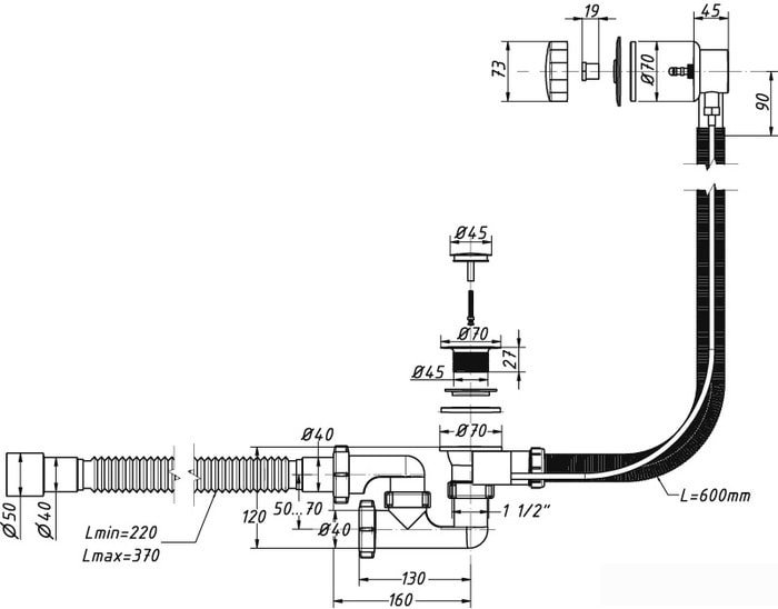 | Длина шланга системы перелива | 600 мм |