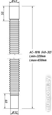 | Информация | Гибкая труба 40 х 32 без выпуска, для соединения сифона с выходным отверстием д.32мм или д.40мм и канализации с входом д.32мм или д.40мм. |