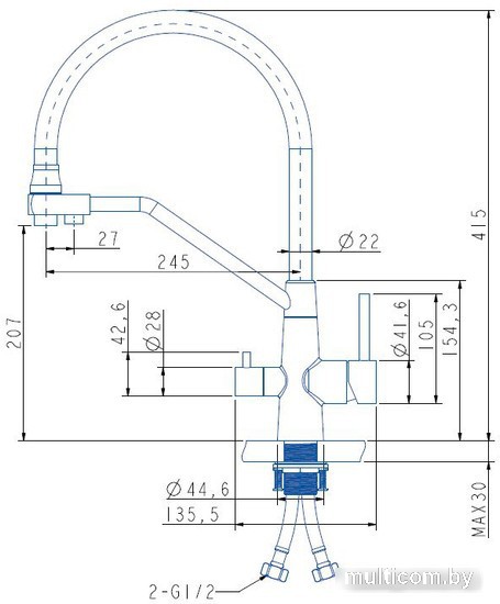 | Длина (вылет) излива | 245 мм |