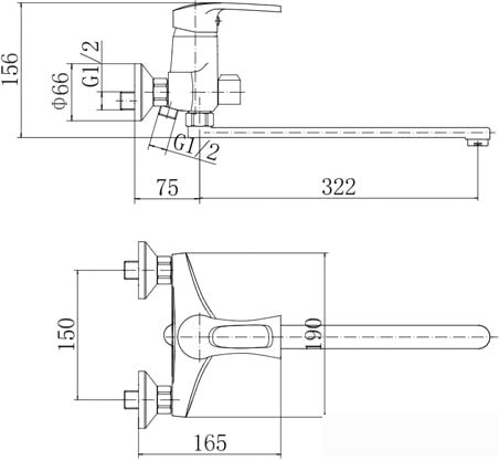 | Длина (вылет) излива | 0 — 322 мм |