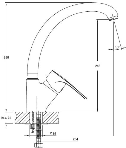 | Длина (вылет) излива | 203 мм |