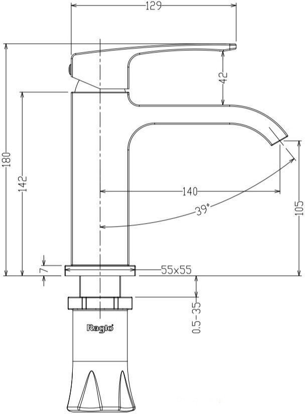 | Длина (вылет) излива | 140 мм |
