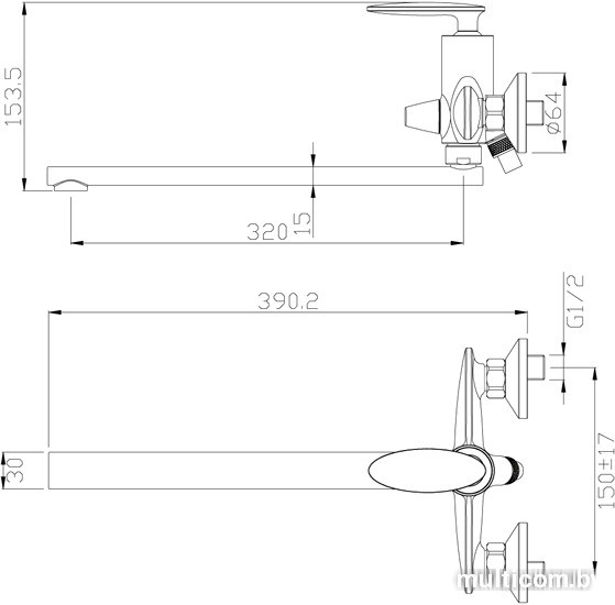 | Длина (вылет) излива | 320 мм |