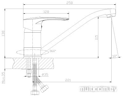| Длина (вылет) излива | 221 мм |