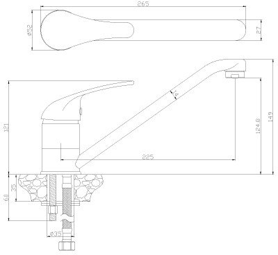 | Длина (вылет) излива | 215 мм |