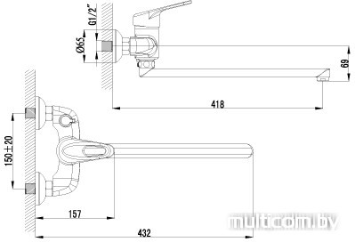 | Длина (вылет) излива | 418 мм |