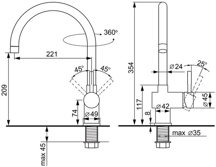 | Высота излива | 209 мм |