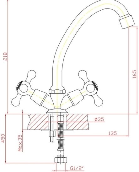 | Длина (вылет) излива | 135 мм |