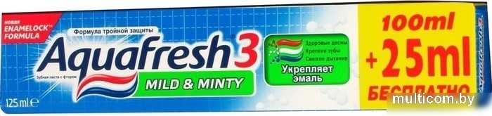| Информация | Зубная паста AQUAFRESH Mild&Minty Мягко-Мятная 125 мл (6101163) - это комплексная защита ротовой полости с мягко - мятным вкусом. Содержит фтор, предотвращает образование зубного налета. Приятный мягкий аромат мяты сделает процедуру чистки зубов комфортной и придаст вашему дыханию свежесть. Легче предотвратить кариес и пародонтоз, чем лечить в запущенной форме. Профилактическая и лечебная зубная паста позволяет быстро восстановить здоровье полости рта. Aquafresh Mild&Minty была разработана специально для того, чтобы защитить ваши зубы от кариеса и пародонтоза. Три цветные полоски пасты означают присутствие трех комплексов действующих веществ: один освежает дыхание и борется с бактериями, второй, с фтором, заботится о здоровье эмали, а третий комплекс предотвращает появление зубного налета. Регулярное применение лечебно-профилактической зубной пасты Aquafresh Mild&Minty позволит вам остановить появление зубного камня и кариеса. Зубная паста Aquafresh "Мягко-мятная" помогает обеспечить тройную защиту полости рта: здоровые десны, крепкие зубы, свежее дыхание. |