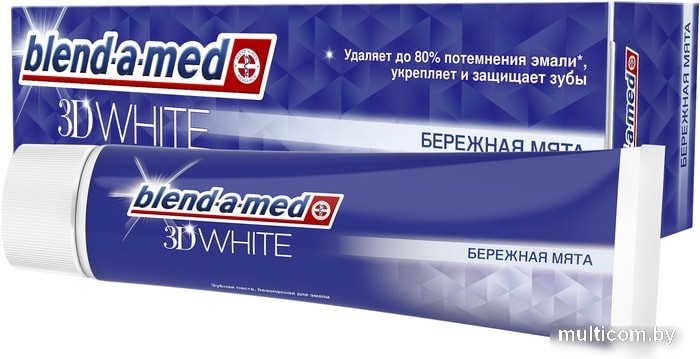 | Информация | Доверьте заботу о белизне своей улыбки зубной пасте Blend-a-med 3D White «Бережная мята». Это комплексное решение 3 в 1 - зубная паста, которая отбеливает, укрепляет и защищает зубы. Безопасная для эмали формула мягко устраняет поверхностное потемнение эмали, делая вашу улыбку красивой и белоснежной, а деликатный вкус мяты надолго оставляет ощущение свежести. Удаляет до 80% поверхностного потемнения эмали 3 в 1: отбеливает, укрепляет, защищает от зубного налёта Формула безопасна для эмали Вкус нежной мяты |