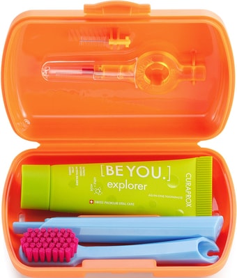 | Состав набора | зубная паста со вкусом яблока и алоэ (10 мл), ультрамягкая зубная щетка и межзубные ершики с держателем в пластиковом боксе |